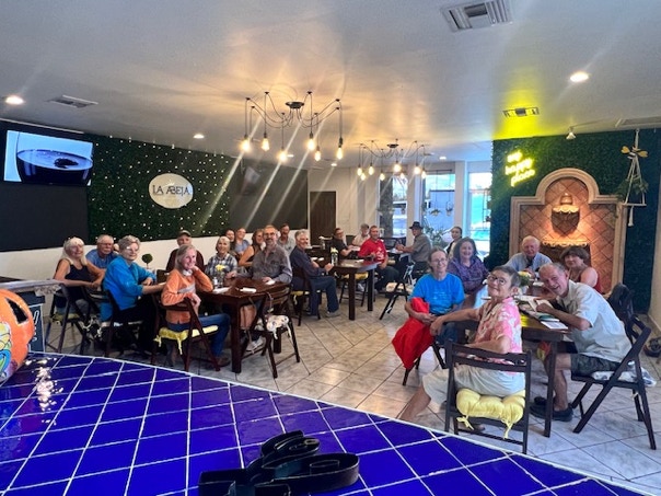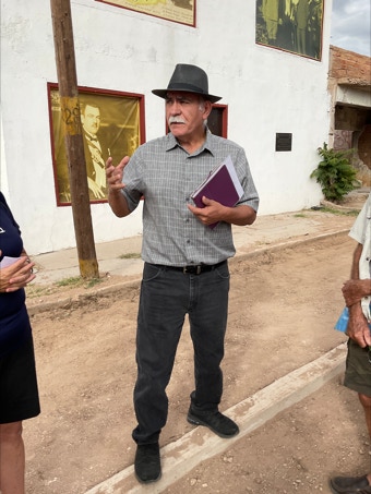 On a lovely Saturday (October 22), 30 people from Portal and Rodeo embarked on an “expedition” to Agua Prieta. Arranged by Howard Topoff and his teaching colleagues at the Center For Academic Success school in Douglas, we had a delicious lunch at La Abeja. We were able to commandeer the entire restaurant! After lunch, we piled into a bunch of vehicles for a tour of the city, led by Oscar, the official Agua Prieta Historian.