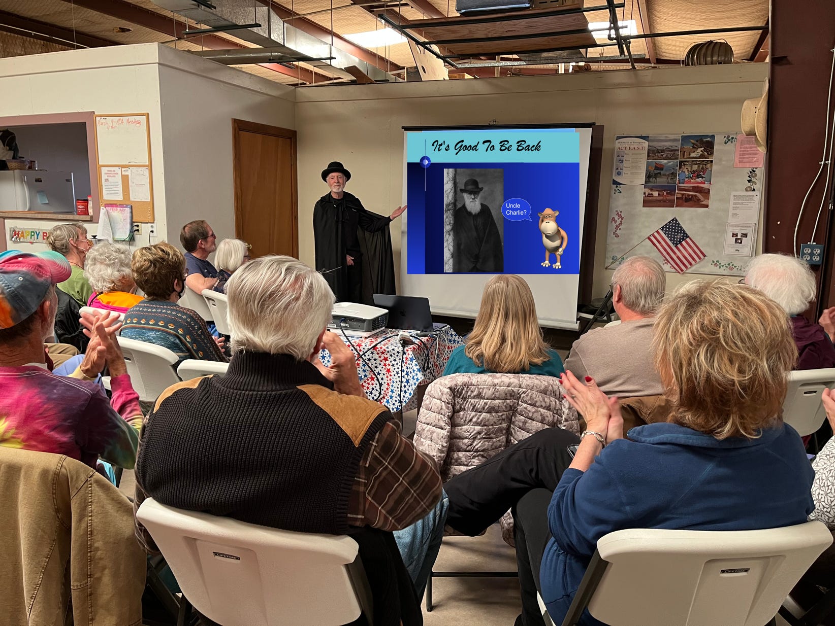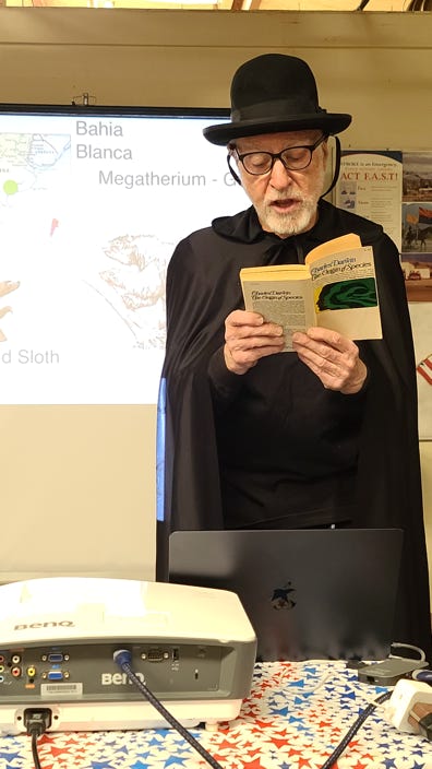 It’s just like Portal & Rodeo. Thirty people RSVPd to the invitations to attend Charles Darwin’s 214th birthday party and 51 people showed up. Fortunately, we had more than enough cake and ice cream to feed the masses. And yes, February 12 is also Abraham Lincoln’s birthday, but he will have to arrange his own celebration next year!