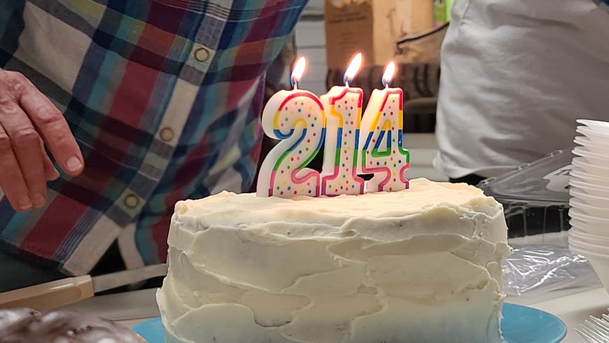 Thanks to everyone who helped make the party a success: the staff of the Rodeo Community Center, the people who baked 4 cakes, and everyone who helped set up and clean up. And special thanks to Deborah Herczog, the co-coordinator of the event.