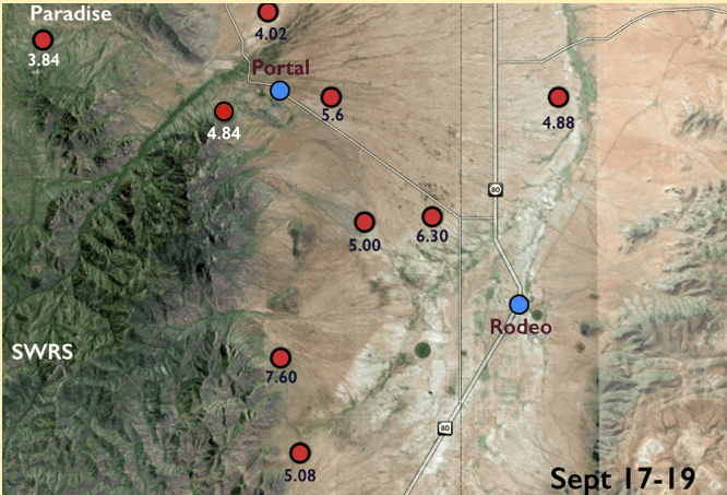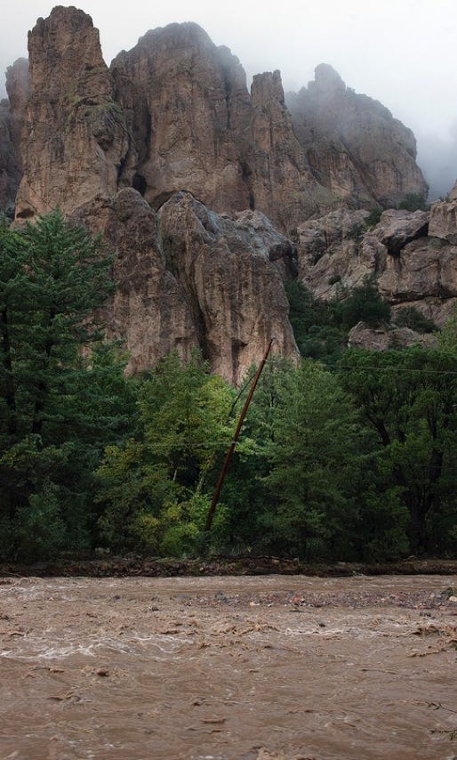 The Forest Service is calling it the 500-Year Flood. Others are comparing it to Katrina, Johnstown Pennsylvania, and Noah. Whatever - we had water where no one living here today remembers water! New creeks popped up everywhere. On September 17, twostorms fromBaja created a deluge the likes of which we have never seen. Fortunately, as far as I know, only the creek-side cottages of Cave Creek Ranch had serious indoor flooding. There are reports that some of the straw bales in Morgan & Johns’s new house were wet. This page will begin to tell the story in pictures, stories and even song (if someone sends me a song). But, as they say, you had to be here to believe it!