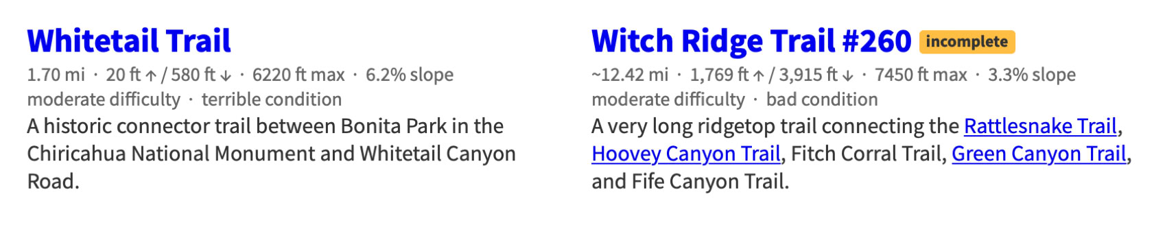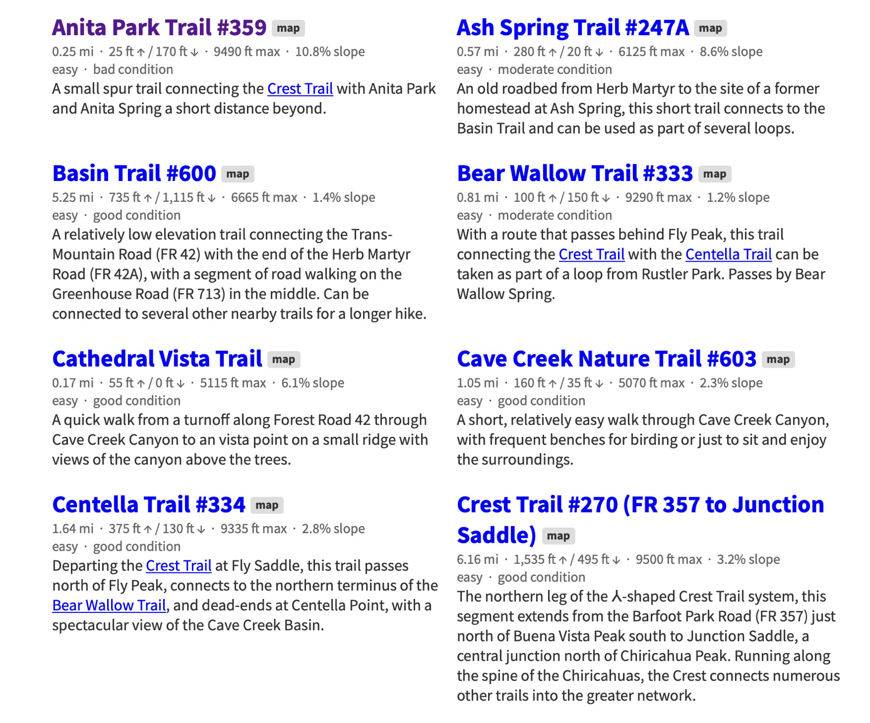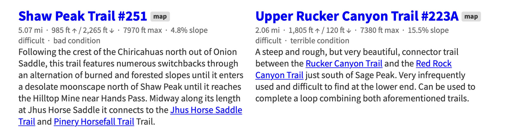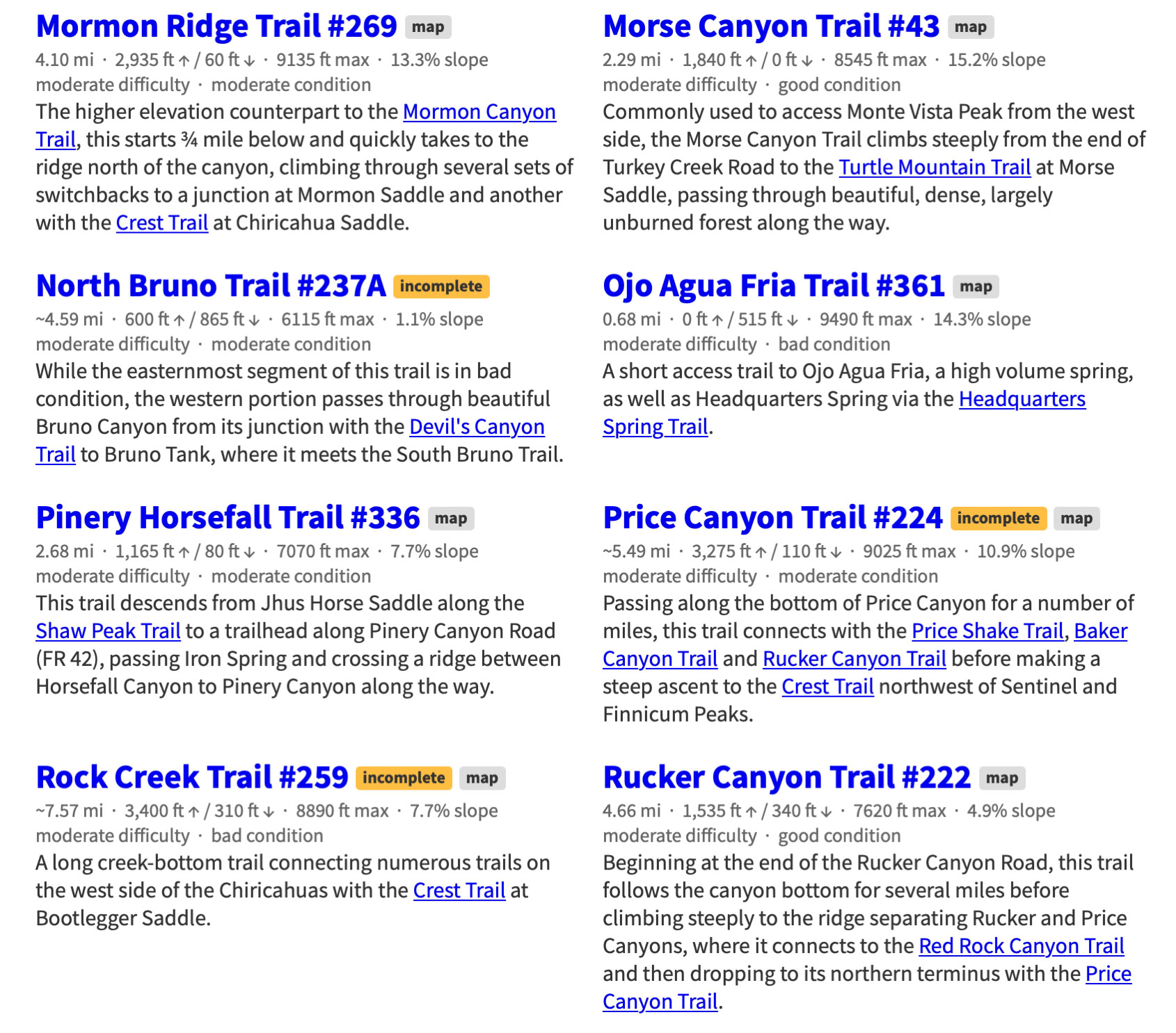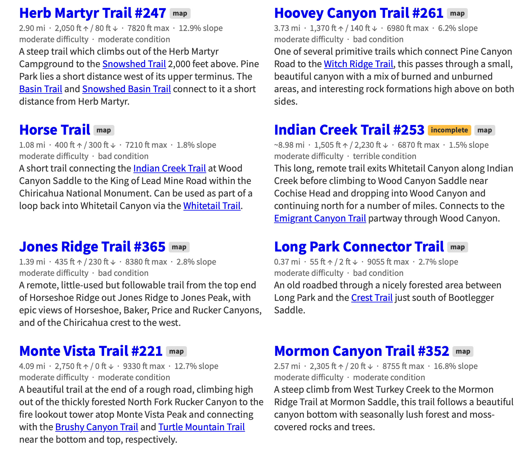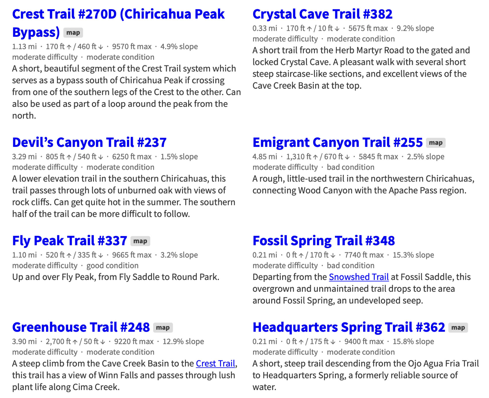 If you would like to see a map of these trails or want more information about the project visit the Chiricahua Mountains Hiking Trails web site at: