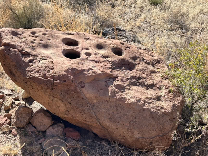 A good place to learn about the early cultures in our area is Mel Moe’s chapter, Early Peoples, in Cave Creek Canyon: Revealing the Heart of the Chiricahua Mountains. Mel was the person that first introduced our hiking group to this area in the Peloncillos. He describes the rock art and bedrock mortars as Mogollon, although this group has now been broken up into several others. Many of the artifacts in this area are thought to cover a period of time from 8000 - 1000 years ago. This was a wetter time and villages were spaced along the San Simon River; farming during some of the year but then moving into the hills to gather foods like acorns and agaves and to hunt deer and bighorn sheep. Agave roasting pits were also used later by Apaches, up until they were forced from their lands in the late 1800s. A huge fire was lit in the pit and once it burned down, agave hearts were thrown inside, covered with the cut leaves and left for 1 - 2 days. The agave hearts were turned into great sweet treats, eaten then or sliced and allowed to dry for later.