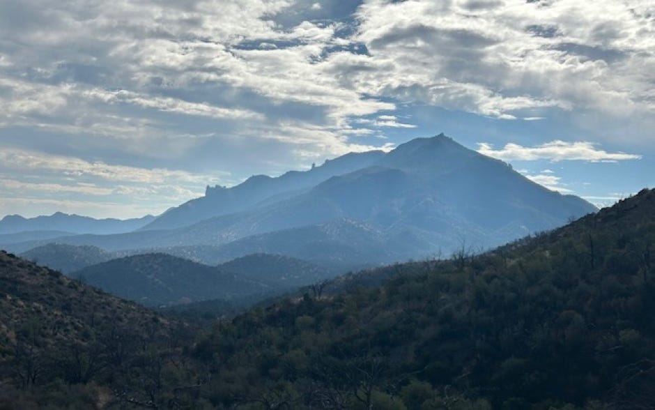 There were rewards along the way, such as this stunning view of Silver Peak. We really enjoyed the lighting.