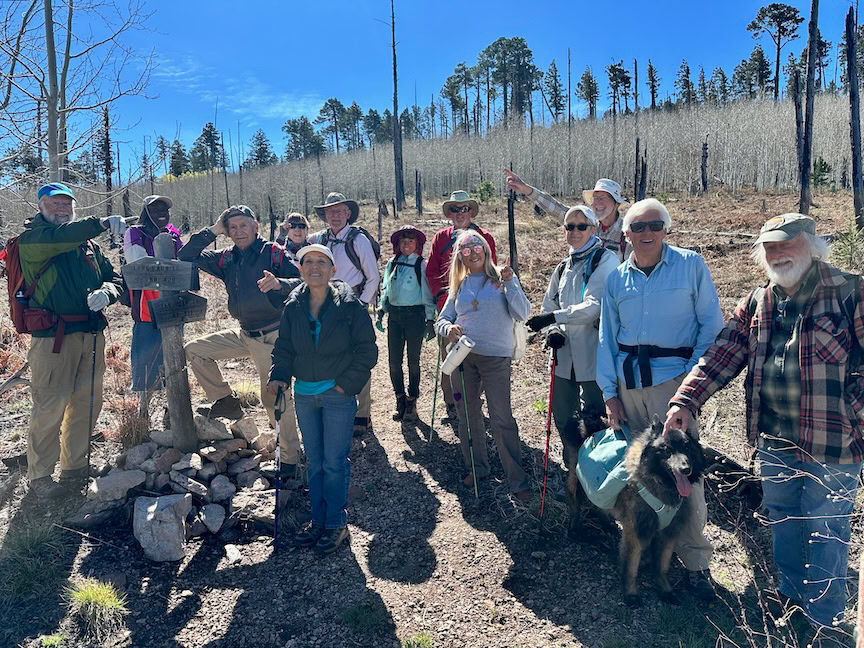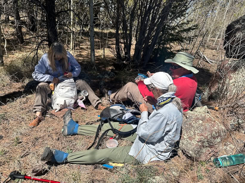 With all of us not used to the elevation, I worried about folks hiking at 9000 ft. when unaccustomed to it. Fortunately, the USFS opened the Rustler Park gate so we could drive up the Long Park Road (cutting off 2 steep miles), and everybody did great! All were experienced hikers, brought enough water, etc. We all got out to Centella Point for lunch.