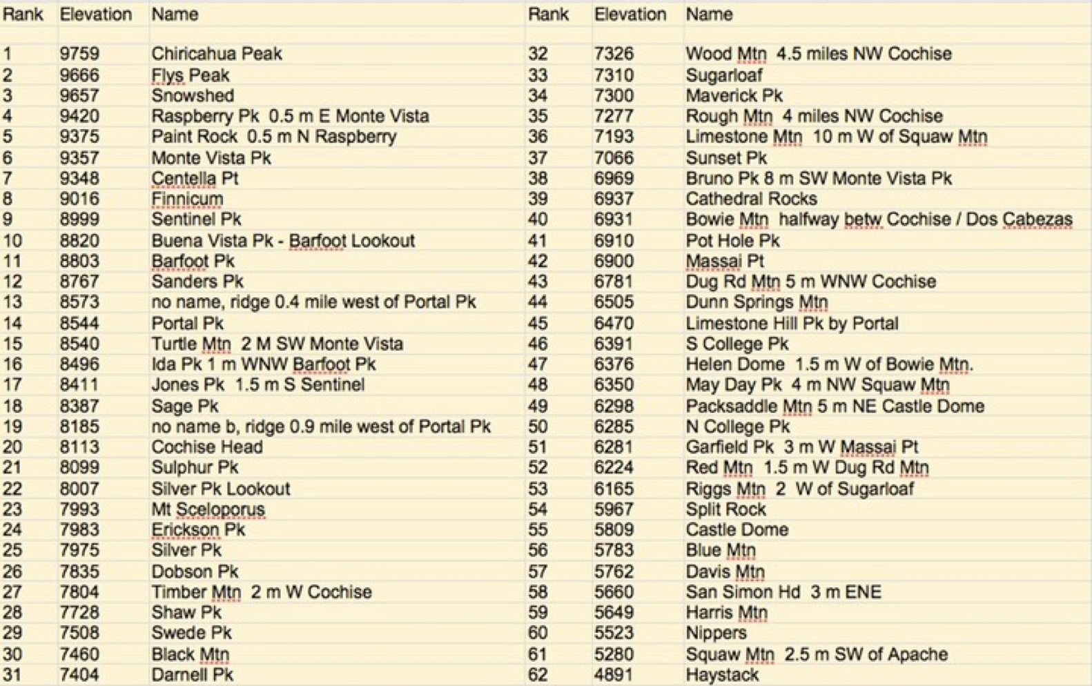 The 62 Highest Peaks, Mountains, Hills, And Lookouts In The Chiricahuas