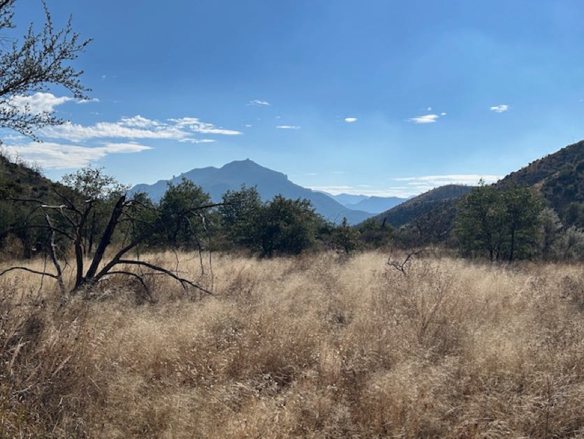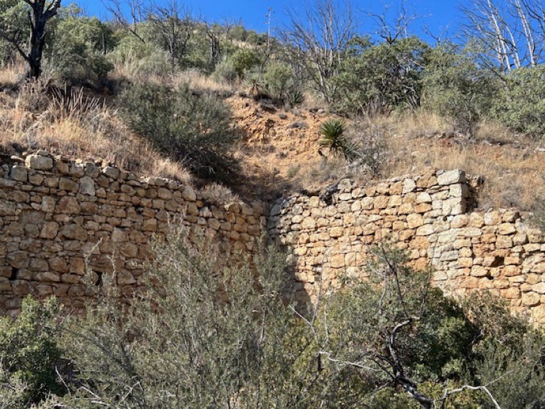 Below you can see what our terrain looked like. The hike was only four miles round trip, but it took awhile to accomplish this. There was a slight increase in elevation, but not much; the Chiricahua Mine is at 6400’.
