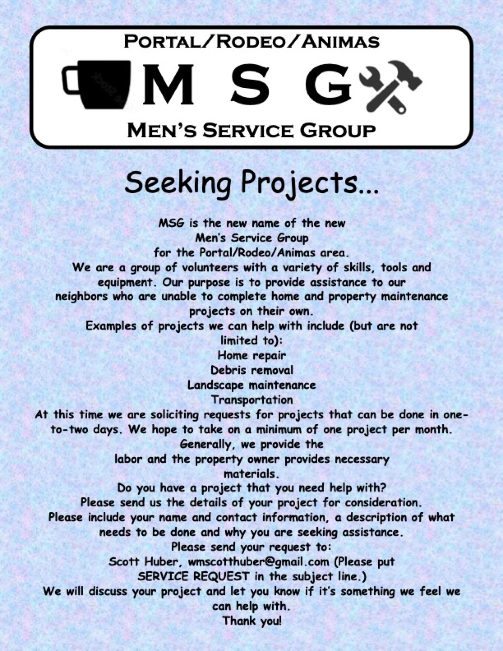 A group of volunteers with a variety of skills, tools, and equipment. We help with short-term projects. Send your requests to Scott Huber (wmscotthuber@gmail.com). Put “Service Request” in the subject line.
