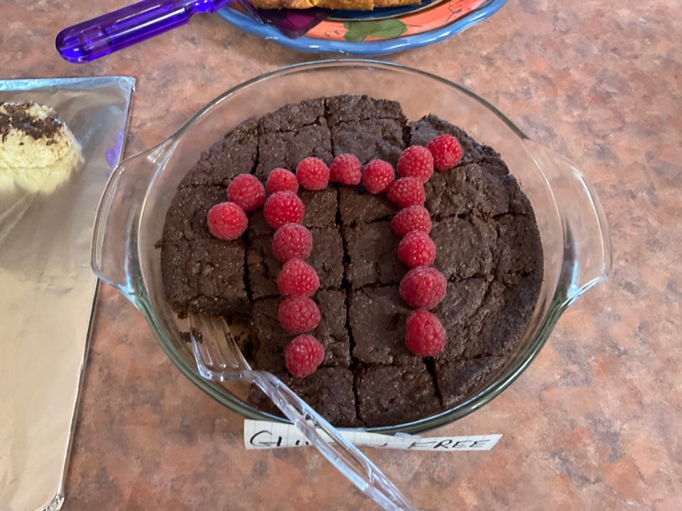 Started by a physicist at the San Francisco Exploratorium in 1988, Pi Day soon became an annual national celebration. And celebrate we did on 3/14. The number of people (42) and the amount of food exceeded our expectation. Yes, we had dessert pies - of every flavor imaginable, but then came the other pies: spaghetti pie, pizza pie, chicken pot pie. OH MY!