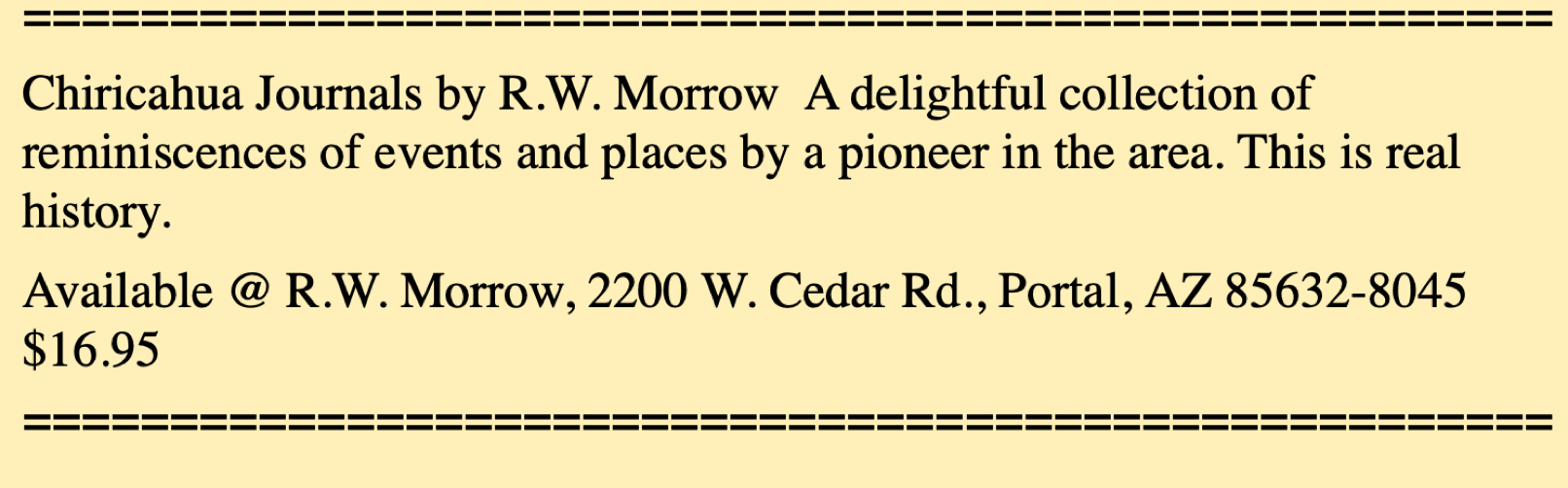 More information and more articles are available at: CCHS P.O. Box 818, Douglas, AZ 85608 (520) 558-2580