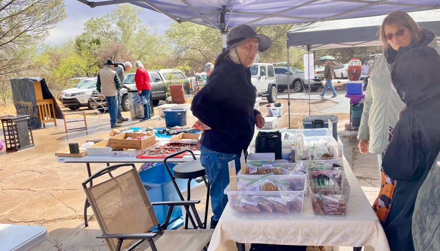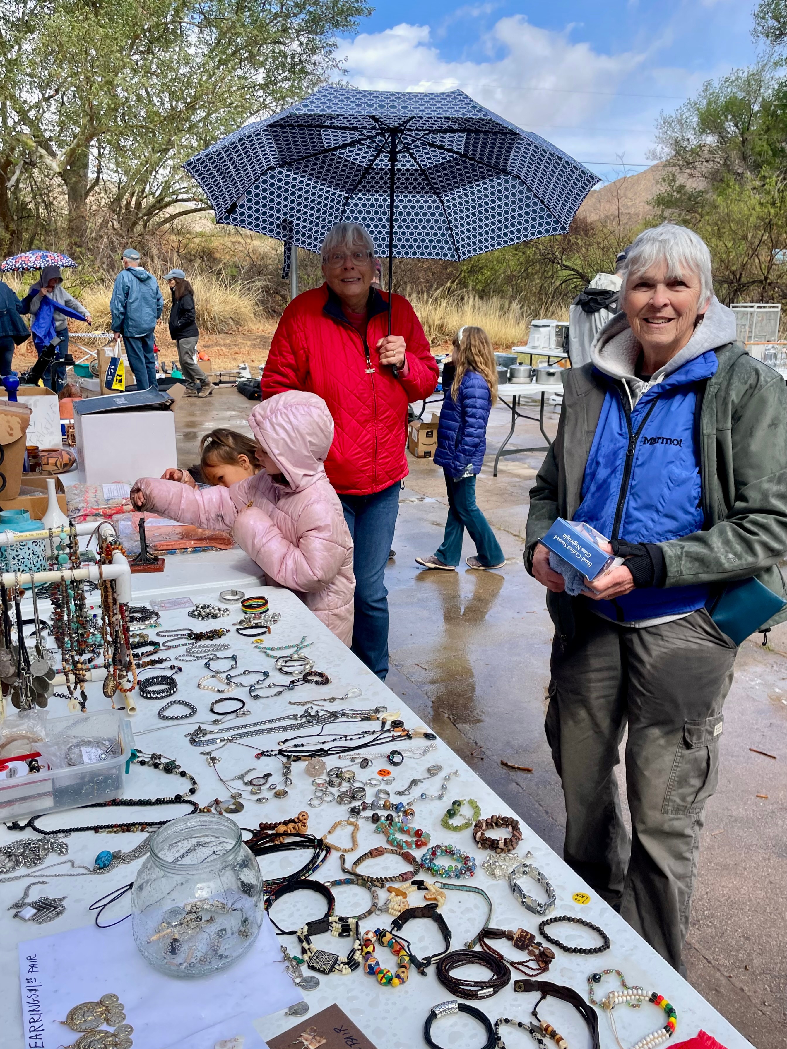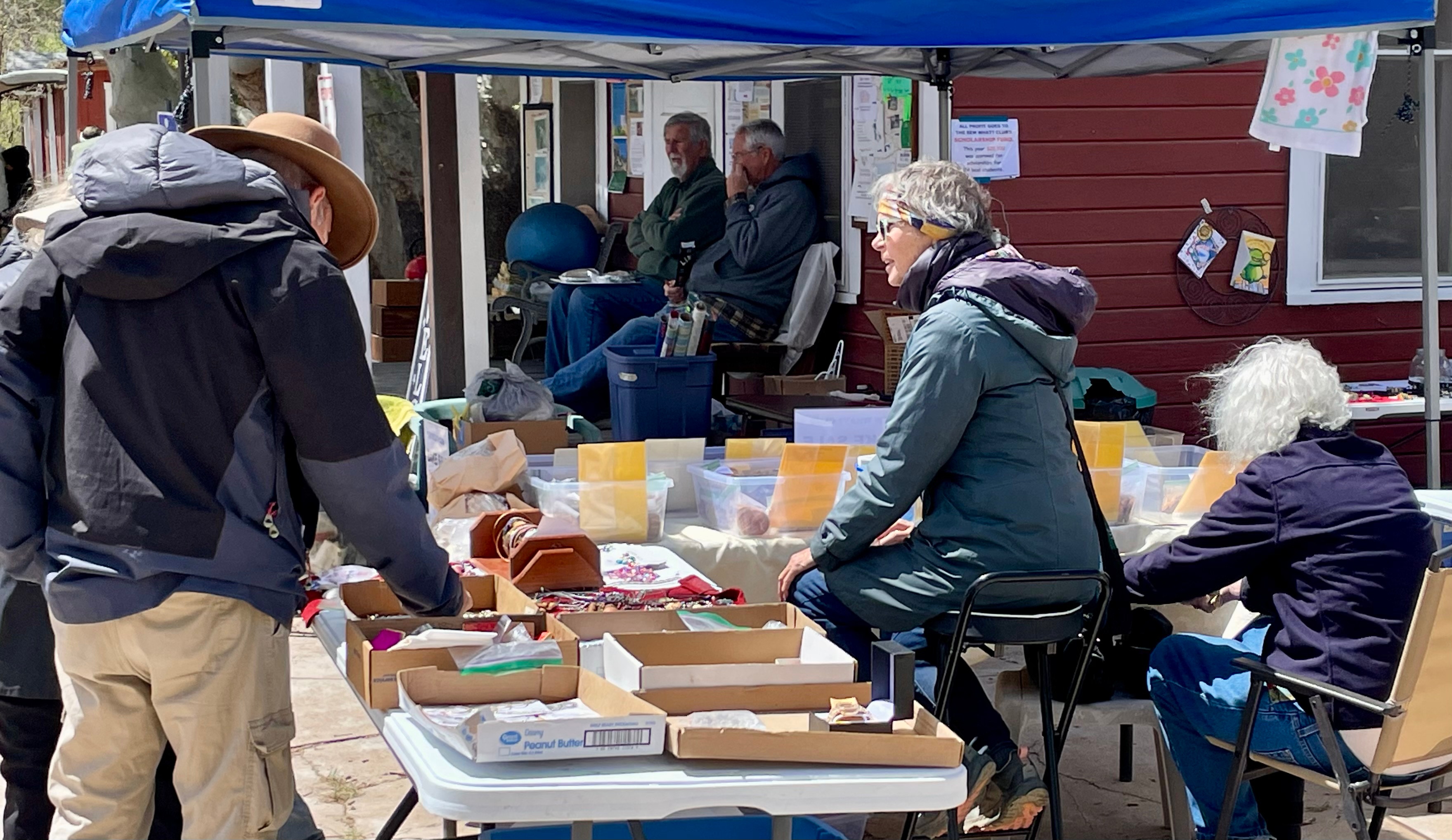 On Saturday morning, April 19 it rained. Not enough to reach the roots of any plants, but perhaps enough to put a damper on (or even ruin) the annual Sew What Rummage Sale. But, as is common these days, the total rain was about 0.03 inches, the drizzle lasted about 30 minutes and the Rummage Sale was a huge success. See anything you like? See anything you purchased?