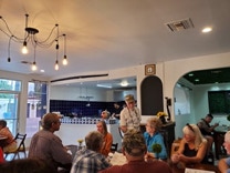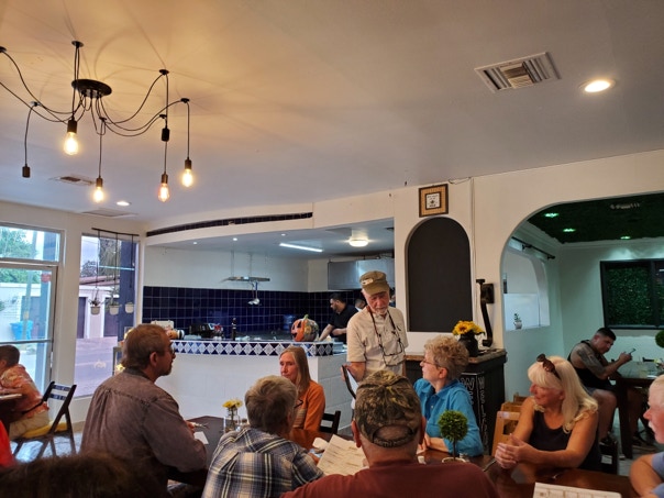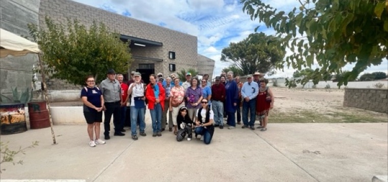 On a lovely Saturday (October 22), 30 people from Portal and Rodeo embarked on an “expedition” to Agua Prieta. Arranged by Howard Topoff and his teaching colleagues at the Center For Academic Success school in Douglas, we had a delicious lunch at La Abeja. We were able to commandeer the entire restaurant! After lunch, we piled into a bunch of vehicles for a tour of the city, led by Oscar, the official Agua Prieta Historian.