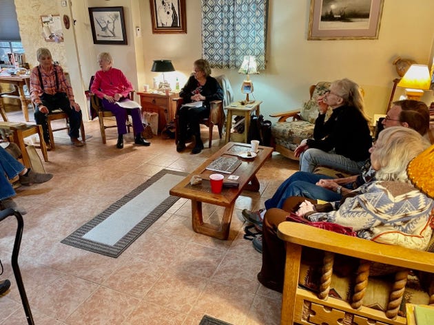 Our local writer’s group has emerged from our Covid isolation and will be meeting twice a month. We had our first meeting with the long time members, who are still able, reading their writings of recent months as well as some old writings from years past. Some new neighbors have also joined the group, so if you like to write, be it fiction, personal journals or poetry, join us and become one of our group. We support each other with guidance, advice and maybe a little constructive criticism.