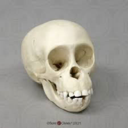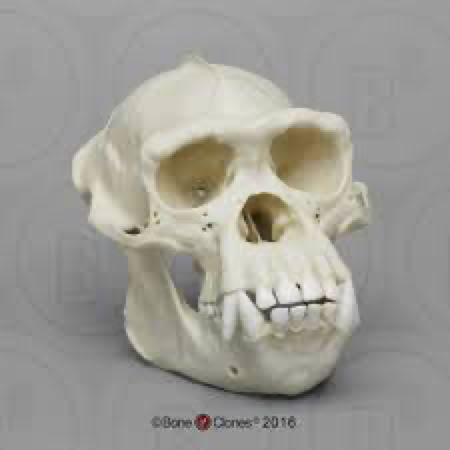 Note the prominent brow on the adult but not on the infant. This is common in many primates. The human skull (right) looks more like the infant chimp. Human evolution involved neoteny, as MANY primate infant features are retained into adulthood. Seems many of the genes that promote significant developmental changes in most primates went silent during human evolution.