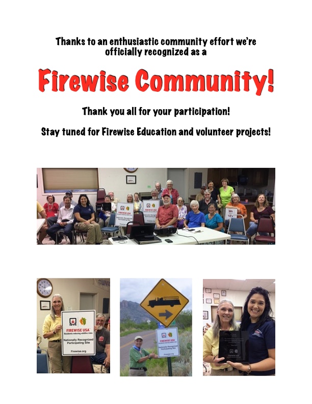 New Google Group: So far, 103 community members have requested inclusion in a new Google Group where we will post educational events and work opportunities, e.g., clean-up of fuels surrounding local infrastructure. Request inclusion in this group by emailing Dinah Davidson at firewise.portalaz@gmail.com .