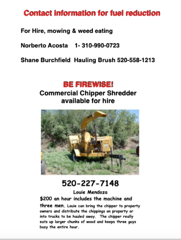 The US Forest Service spent a great deal of money (and assumed more than enough risk!) protecting our beloved Cave Creek Canyon and our local economy from the Horseshoe II fire. It will not have the resources to provide the same degree of protection in the future. The Community must step up and do its part, and the Community is only as strong as its weakest link. Don’t let that be you! The Firewise Committee invites your participation in our local Firewise program, and we can provide several enticements.
