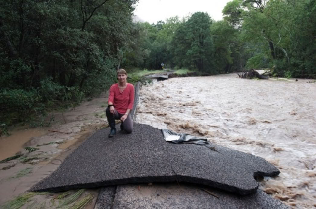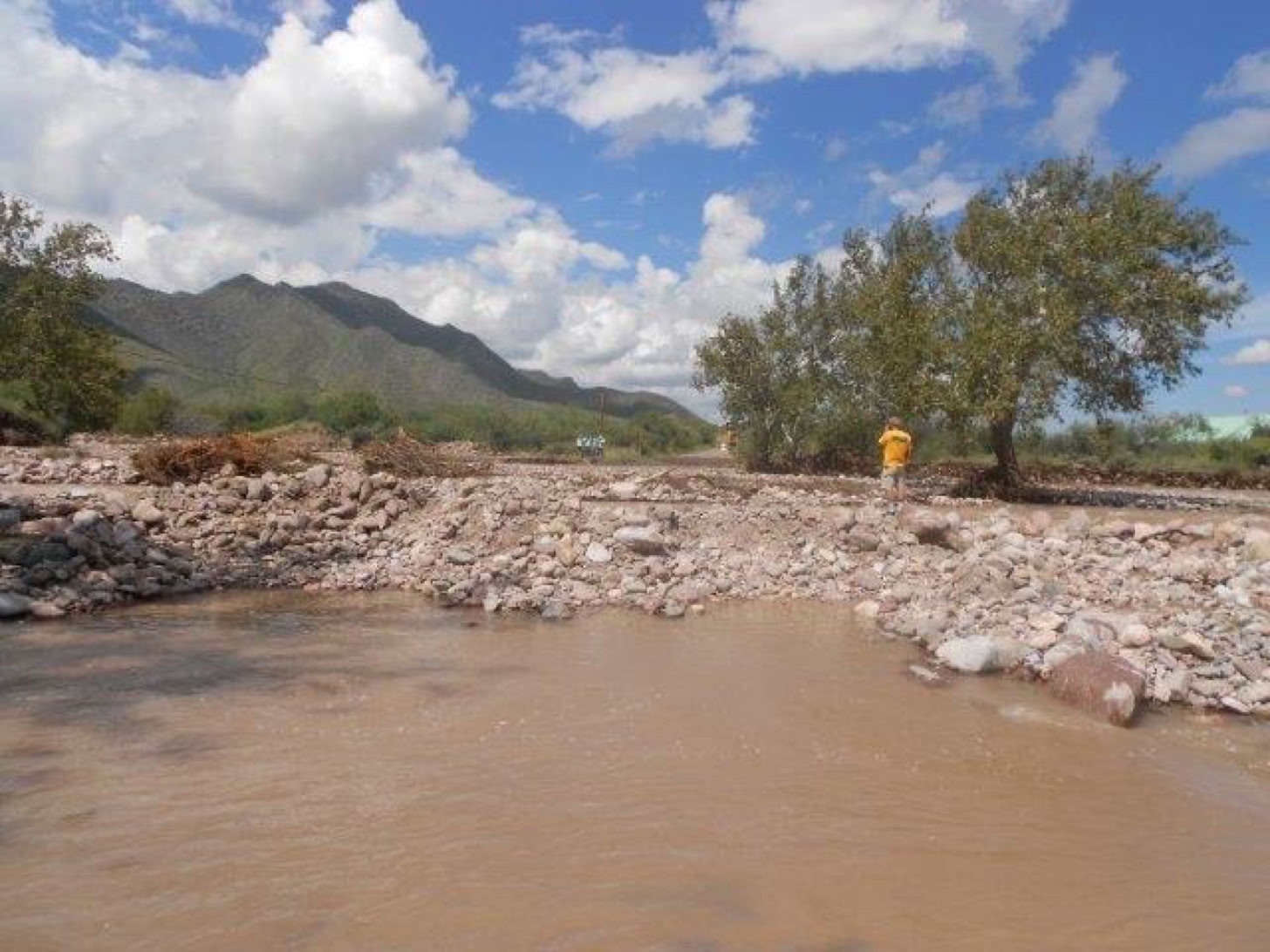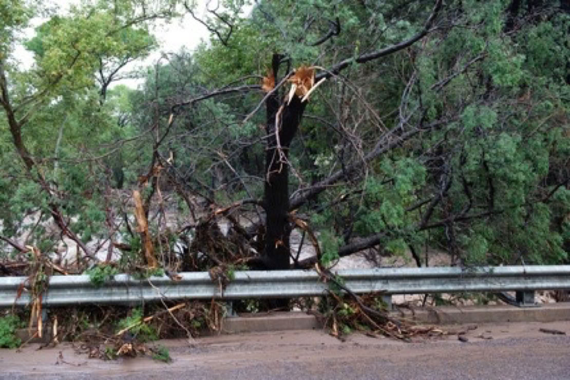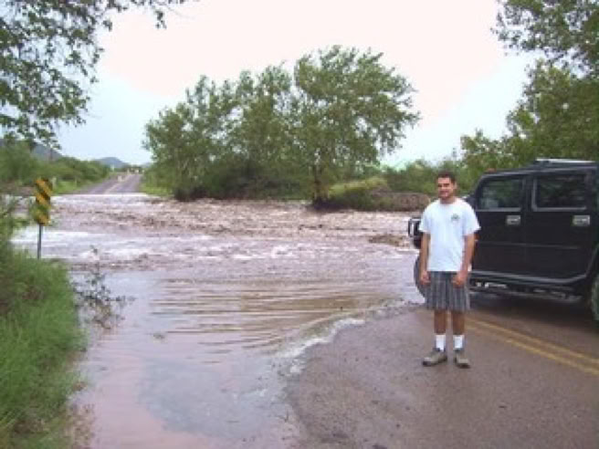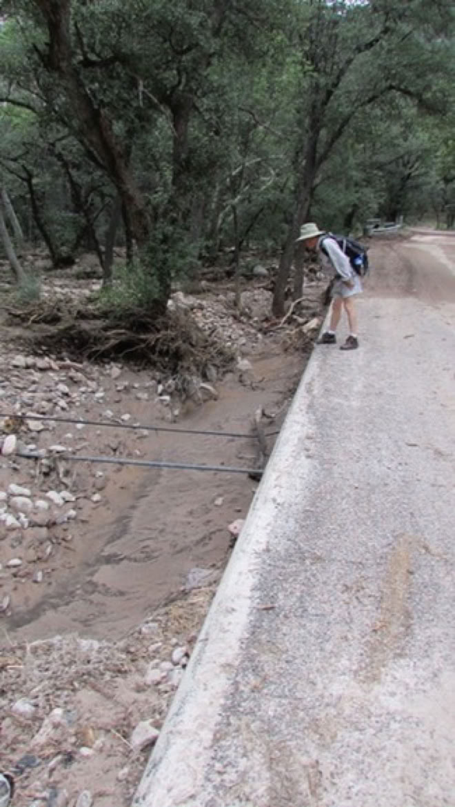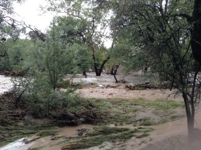 The Forest Service is calling it the 500-Year Flood. Others are comparing it to Katrina, Johnstown Pennsylvania, and Noah. Whatever - we had water where no one living here today remembers water! New creeks popped up everywhere. On September 17, twostorms fromBaja created a deluge the likes of which we have never seen. Fortunately, as far as I know, only the creek-side cottages of Cave Creek Ranch had serious indoor flooding. There are reports that some of the straw bales in Morgan & Johns’s new house were wet. This page will begin to tell the story in pictures, stories and even song (if someone sends me a song). But, as they say, you had to be here to believe it!
