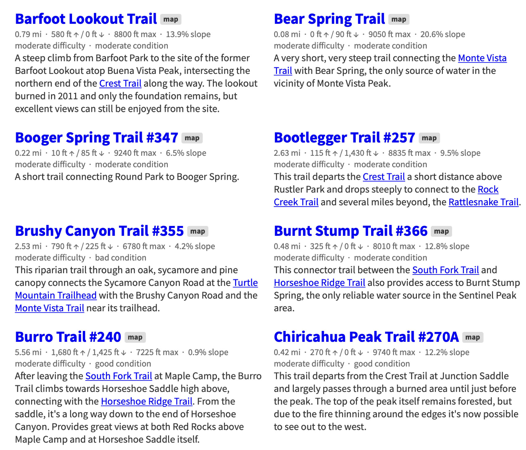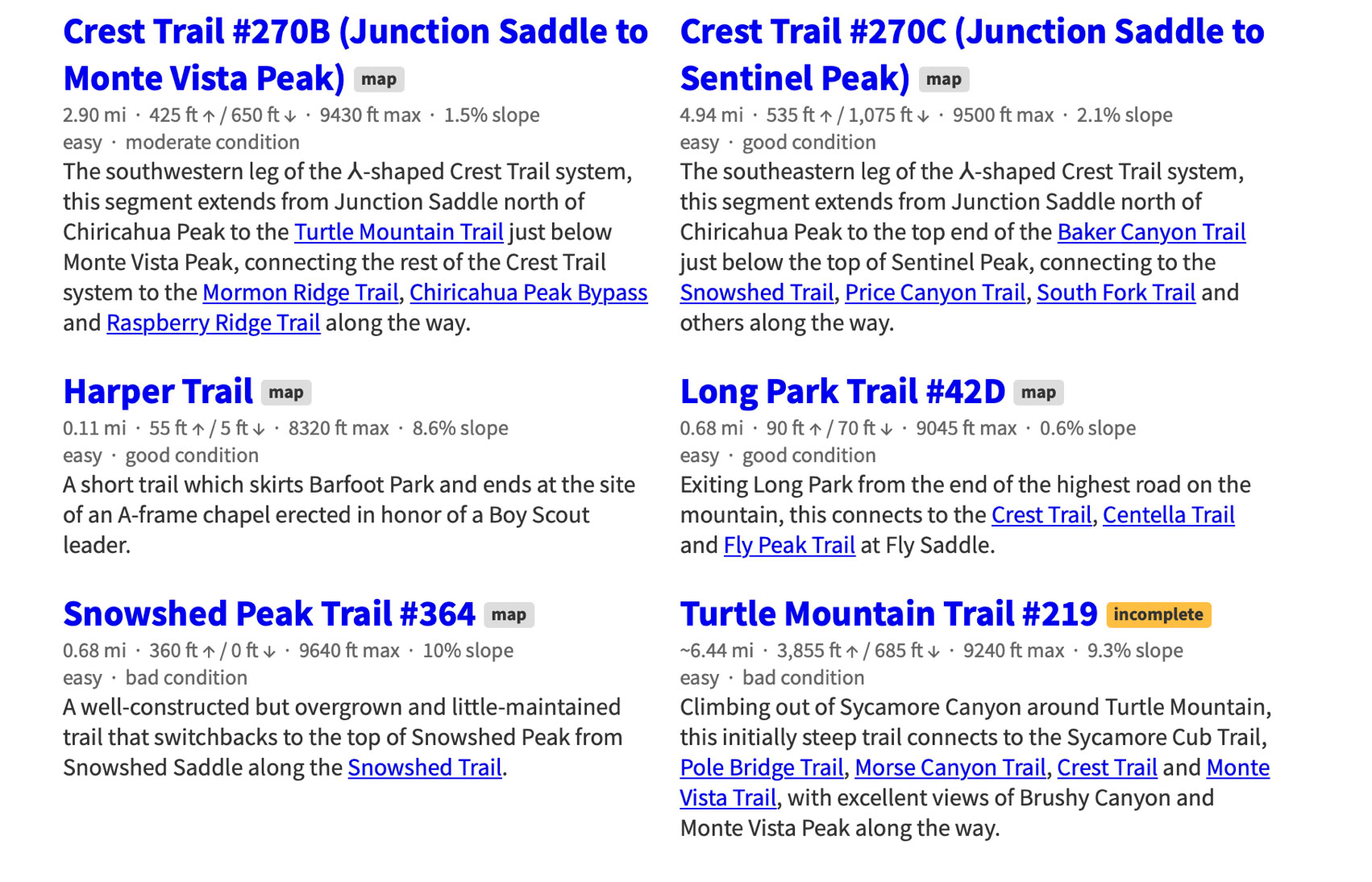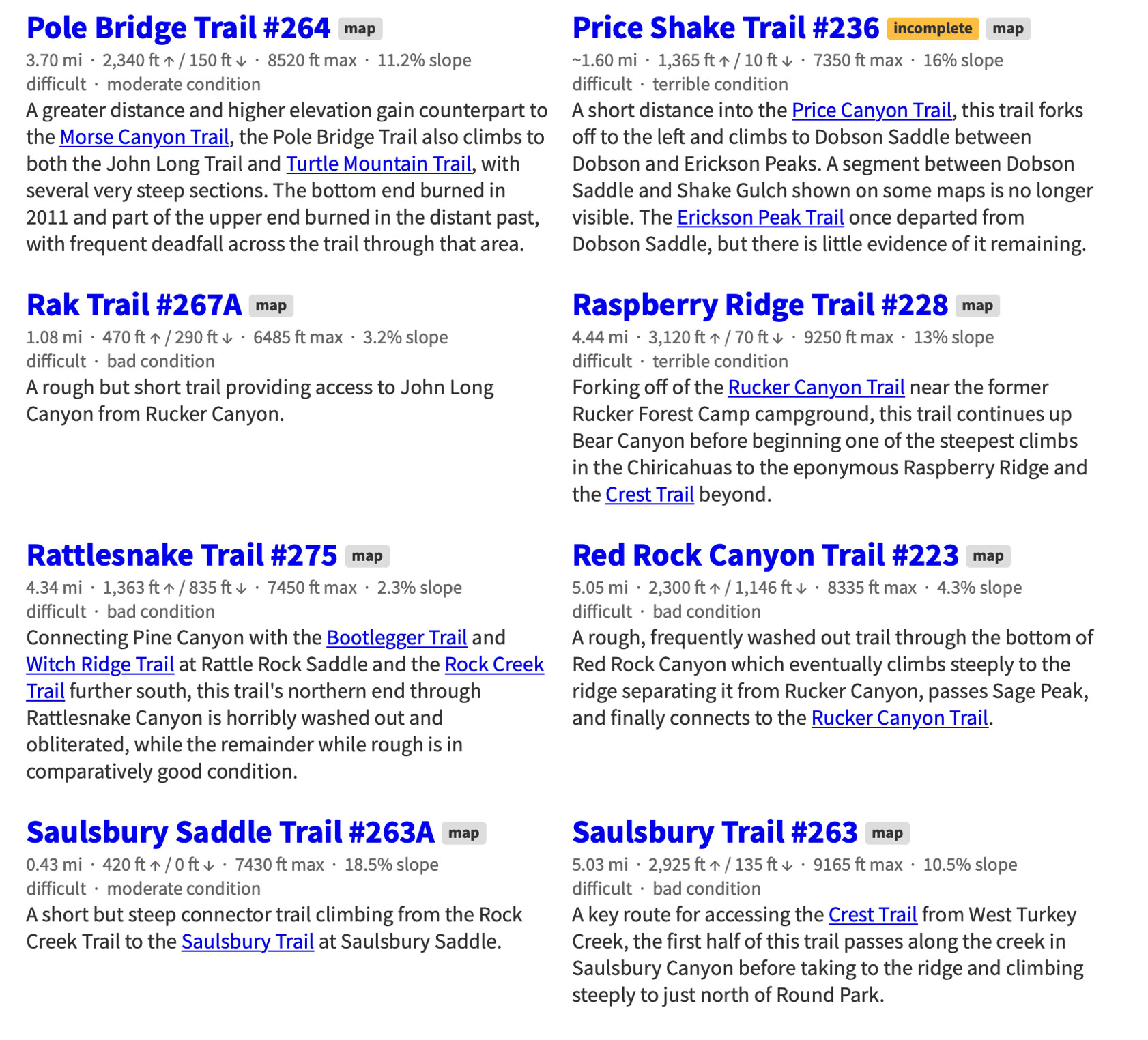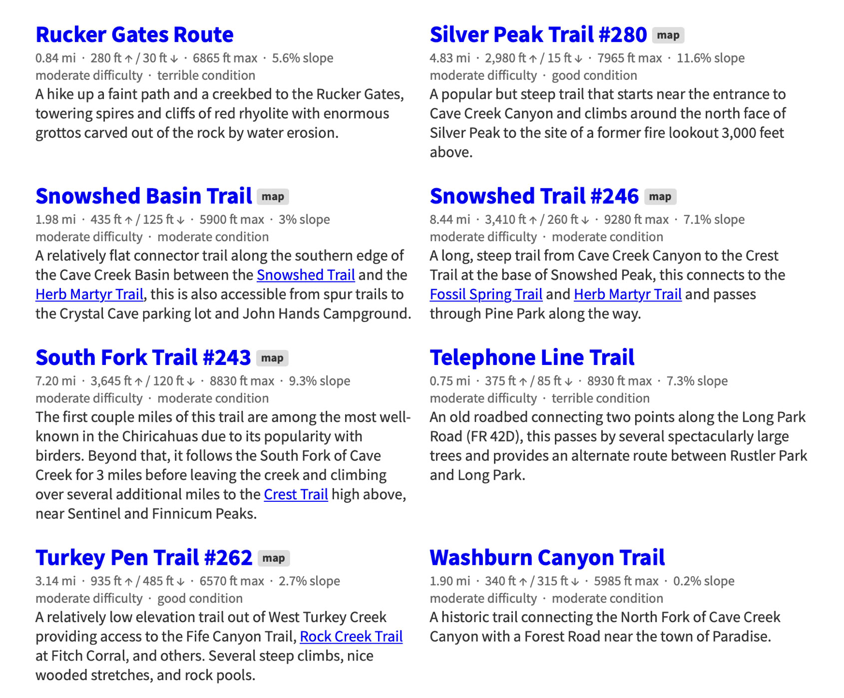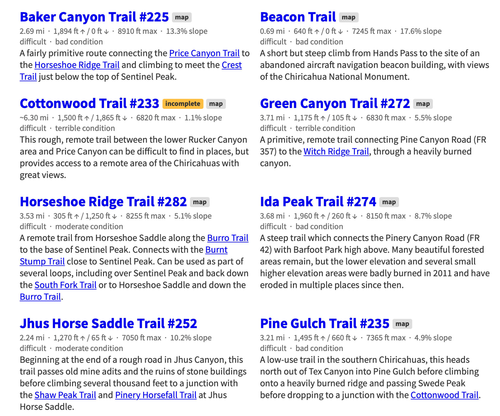 If you would like to see a map of these trails or want more information about the project visit the Chiricahua Mountains Hiking Trails web site at: