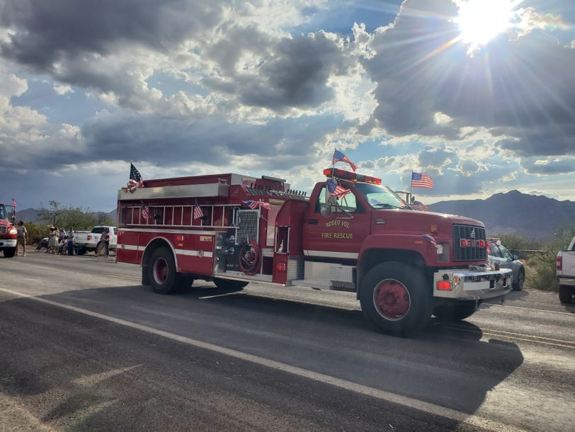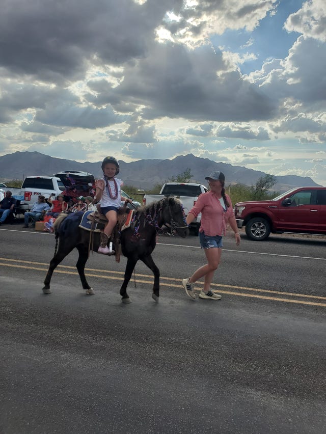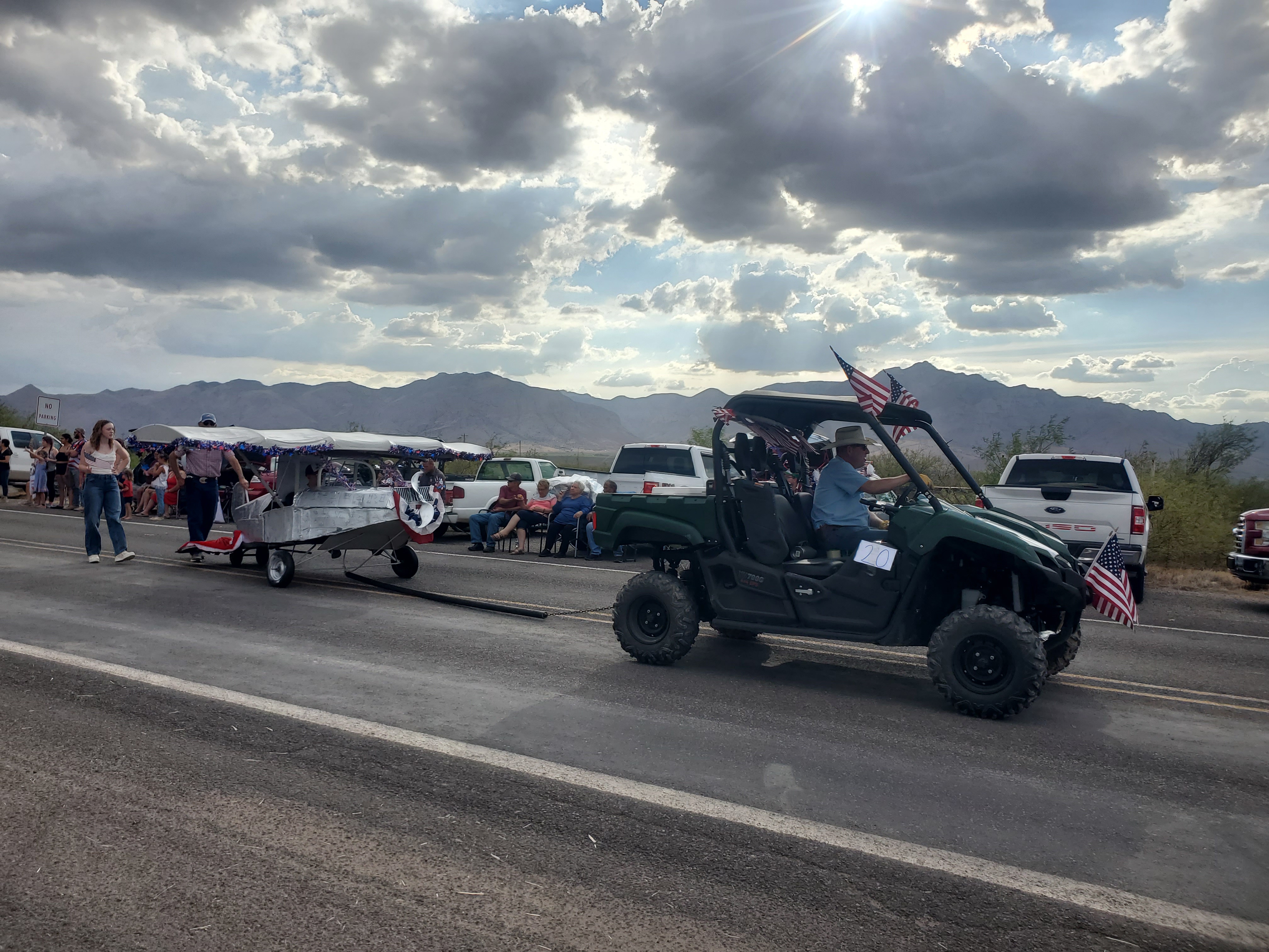 As Tucson continued to suffered through a record breaking 112 degrees, residents of Portal & Rodeo braved the heat to celebrate the 4th Of July. But, despite the heat, tradition won out: we had a parade, dinner, auction, dance, and fireworks. Thanks to Aimee Essary and all her helpers for organizing the event.