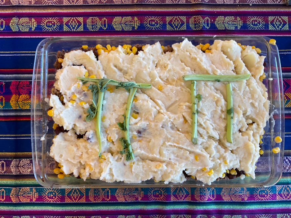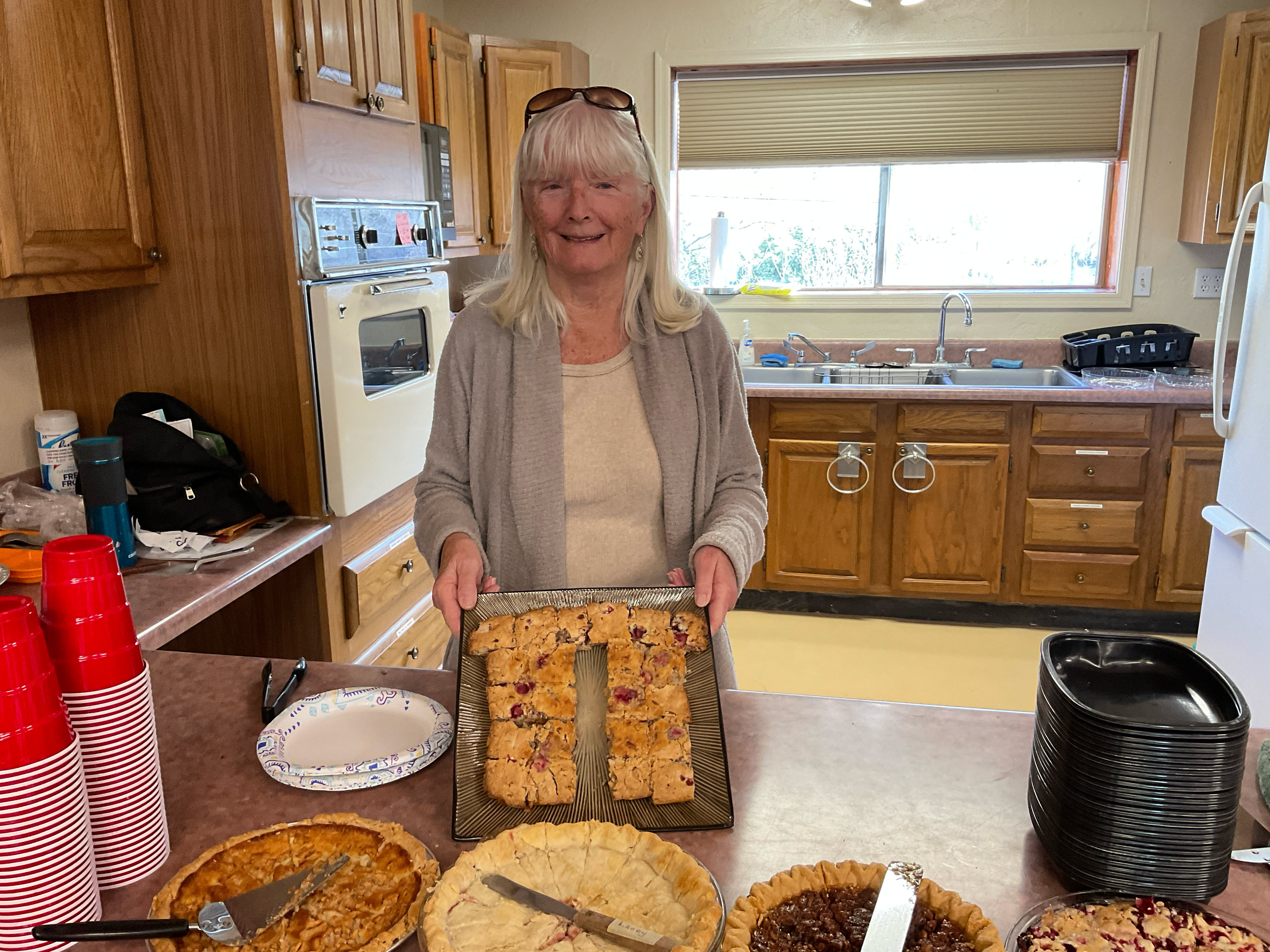 Started by a physicist at the San Francisco Exploratorium in 1988, Pi Day soon became an annual national celebration. And celebrate we did on 3/14. The number of people (42) and the amount of food exceeded our expectation. Yes, we had dessert pies - of every flavor imaginable, but then came the other pies: spaghetti pie, pizza pie, chicken pot pie. OH MY!