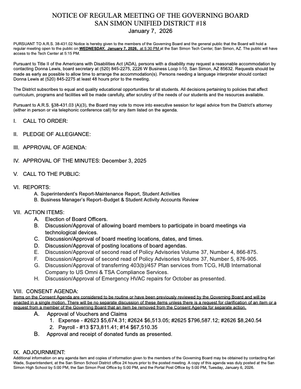 San Simon School News