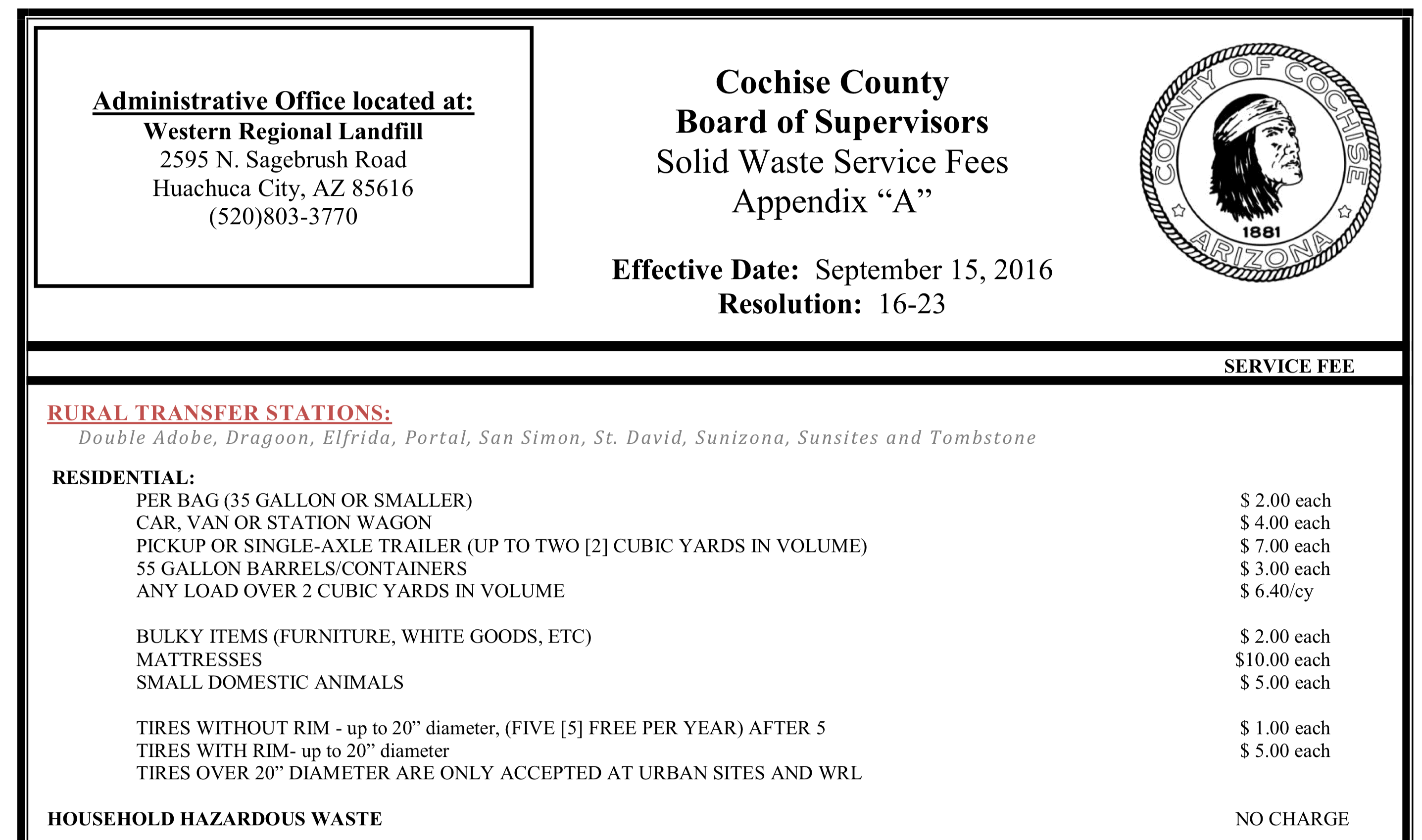 Cochise County Department Of Solid Waste: