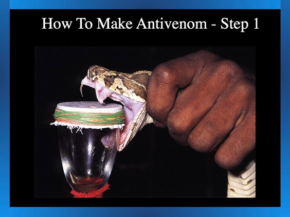 2. Inject small amount of venom into a large animal (horse or sheep). Animal makes